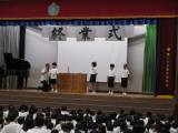 9月24日(水)に音楽朝会をしました。今月の歌は「チャレンジ」です。リズムに合わせ元気よくハキハキ歌いました。また、4年生の代表児童が、自分の好きな歌詞とその理由について発表してくれました。「やりたいことがあるならおもいっきりやろう」の歌詞のように、頑張る仲井真っ子になりましょう。
