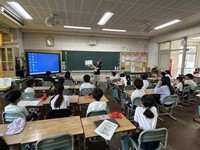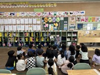 喜田真帆先生の大会参加報告会を学年児童に向けて行いました。喜田先生は、同大会において