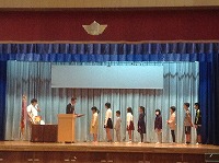 また、引き続き校長講話があり、1~3年までの各学級から1名ずつ立ち止まり挨拶がよく出来ている児童」の紹介、4~6年までの各学級から1名ずつ「無言清掃(もくもく清掃)がよくできている児童」の紹介も行われました。