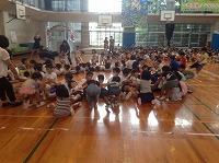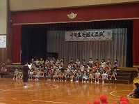 6年生に手を引かれて入場し、各学年からの出し物やプレゼントやゲームがあったり、みんなで歌ったり、とても楽しい1時間でした。