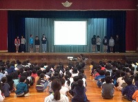 今朝は児童朝会が行われ、給食委員会による発表がありました。
