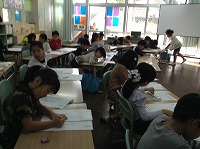 1~2年生は硬筆、3~6年は毛筆に挑戦しています。