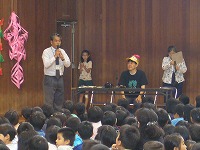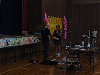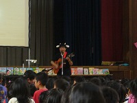 11月10日火曜日の授業参観日、4校時に体育館にて絵本作家のあきやまただしさんの読み聞かせライブが行われました。全校児童、保護者並びに地域の方々もご参加下さり、あきやまさんの世界を楽しんでいました。