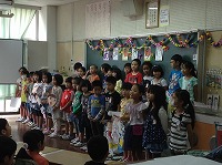 現一年生が司会をして、小禄小学校の学校生活の様子を紹介したり、授業の体験をしてもらったり、校歌を披露したり、一緒にダンスを踊ったり、楽しいお招き会をしてくれました。