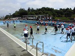 5月7日(金)に、プール清掃をしました。6年生は、主にプールの中を担当し、たわしやブラシを使って、プールについた汚れを落としました。気持ちよく授業ができるよう、小禄っ子のために一生懸命活動をしました。みんなの頑張りできれいになりました。