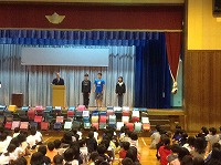 各種大会やコンクールの上位入賞者の表彰、6年間ランドセルを使い続けた児童の表彰です。