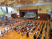 お返しに全校児童でBelieveを歌い、お互いに歌を響かせ合う素敵な音楽朝会となりました。