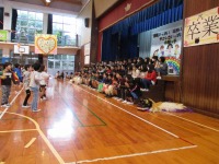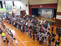 3月3日(金)に卒業を祝う会を行いました。大好きな6年生の卒業を祝おうと、1・3・5年生はダンス等のだしものをし、2・4年生からは手作りのプレゼントを贈りました。また、5年生の挑戦状を受け、6年生対5年生の3色綱引きも行いました。結果は、6年生の貫禄を示し、6年生の圧勝に終わりました。下級生の気持ちに応え、6年生は獅子舞を披露してくれました。