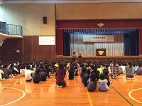 校長先生から、「10年後の目標を持つこと」「あきらめない人」「ていねいな言葉をつかうこと」についてお話しました。