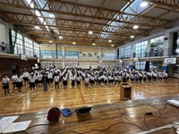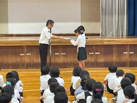 試合競技3位という素晴らしい成績を収めました。「なぎなた競技に出場するのは5年ぶりであり、仲間とともに日々練習を重ねてきた成果を十分に発揮することができました。結果を出せてとてもうれしい一方で、悔しい気持ちもありました。しかし、仲間を信じて頑張ってきたことが、何よりの財産になりました。先生も仲間と共に頑張ることができました。皆さんも運動会や日々の学校生活で、力を合わせて頑張ってほしいです。6年生の応援があったからこそ、先生も力を出し切ることができました。応援してくれた皆さんに感謝の気持ちでいっぱいです。」と語り、児童たちも真剣に耳を傾けていました。喜田先生の努力と挑戦は、子どもたちにとっても大きな励みとなりました。