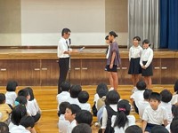 喜田真帆先生の大会参加報告会を学年児童に向けて行いました。喜田先生は、同大会において