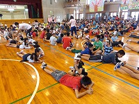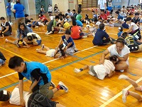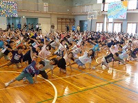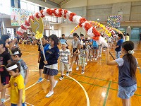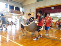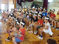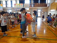 6年生と手をつなぎながら1年生が入場し、全員で歌を歌いました。その後は各学年からのプレゼントや出し物がありました。2年生と4年生からは、ブレスレットとお面の手作りプレゼントがありました。3年生はダンス、5年生はマットを使った「空飛ぶじゅうたん」、6年生は「おいもの天ぷら」を1年生と楽しみました。1年生の笑顔がたくさん見られた「入学を祝う会」となりました。会を進行してくれた企画委員会のみなさん、お疲れ様でした。そして、会を盛り上げてくれた2年生から6年生のみなさん、ありがとうございました。