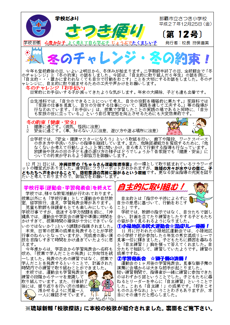平成27年9月2日(水)図書朝会がありました。図書委員会による本の紹介や、読書月間に行われる内容のお知らせでした。最後に方言クイズもあり、盛り上がりました。読書月間中は読書クイズも行われる予定です。たくさんの本を読んで、全問正解目指してがんばりましょう。