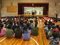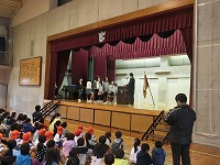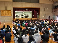 平成27年9月2日(水)図書朝会がありました。図書委員会による本の紹介や、読書月間に行われる内容のお知らせでした。最後に方言クイズもあり、盛り上がりました。読書月間中は読書クイズも行われる予定です。たくさんの本を読んで、全問正解目指してがんばりましょう。