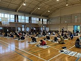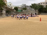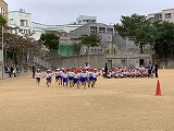 当日の子どもたちの様子を紹介します。体育館では、6年生が書き初めを披露し、運動場では、1年生が元気いっぱいに持久走大会に取り組んでいました。