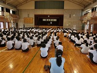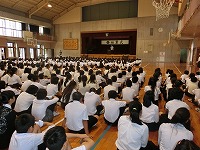 平成27年9月2日(水)図書朝会がありました。図書委員会による本の紹介や、読書月間に行われる内容のお知らせでした。最後に方言クイズもあり、盛り上がりました。読書月間中は読書クイズも行われる予定です。たくさんの本を読んで、全問正解目指してがんばりましょう。