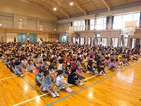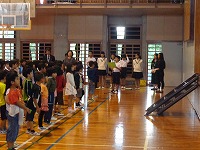 平成27年9月2日(水)図書朝会がありました。図書委員会による本の紹介や、読書月間に行われる内容のお知らせでした。最後に方言クイズもあり、盛り上がりました。読書月間中は読書クイズも行われる予定です。たくさんの本を読んで、全問正解目指してがんばりましょう。