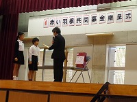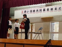 平成28年12月14日(水)赤い羽根共同募金贈呈式があり、那覇市社会福祉協議会局長の山城さんをお招きしました。さつき小学校の児童のみなさんから集めた募金と、児童会のみなさんが街頭募金で集めたお金を合わせて、「49713円」が今回集まりました。このお金は、お年寄りや災害で困っている人々など、困っている人たちの為に使われることを、山城さんが約束してくれました。赤い羽根共同募金に協力してくれた、さつきっ子のみなさん、児童会のみなさん、ありがとうございました。