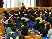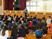 平成27年9月2日(水)図書朝会がありました。図書委員会による本の紹介や、読書月間に行われる内容のお知らせでした。最後に方言クイズもあり、盛り上がりました。読書月間中は読書クイズも行われる予定です。たくさんの本を読んで、全問正解目指してがんばりましょう。