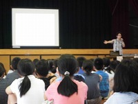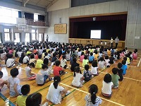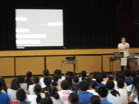 平成29年7月11日、非行防止教室がありました。講師に、豊見城警察署の生活安全課より、小橋川さんと石垣さんのお二人をお招きしました。3校時は低学年、4校時は高学年と分けて、いじめ、万引き、たばこ、お酒について学習しました。たくさんの資料やDVDを使って、分かりやすく説明してくださり、とても有意義な会となりました。児童のみなさんも、暑い体育館の中、真剣にお話を聞いていて、聞く態度も素晴らしかったです。今日のお話を、是非これからの生活に役立ててください。講話をしていただいた、小橋川さん、石垣さん、どうもありがとうございました。