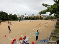 天気はあいにくの曇り空でしたが、運動場では50M走やソフトボール投げをしました。50M走では、タイムを競ってみんな一生懸命でした。