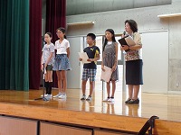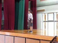平成27年9月2日(水)図書朝会がありました。図書委員会による本の紹介や、読書月間に行われる内容のお知らせでした。最後に方言クイズもあり、盛り上がりました。読書月間中は読書クイズも行われる予定です。たくさんの本を読んで、全問正解目指してがんばりましょう。