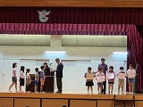 平成27年9月2日(水)図書朝会がありました。図書委員会による本の紹介や、読書月間に行われる内容のお知らせでした。最後に方言クイズもあり、盛り上がりました。読書月間中は読書クイズも行われる予定です。たくさんの本を読んで、全問正解目指してがんばりましょう。