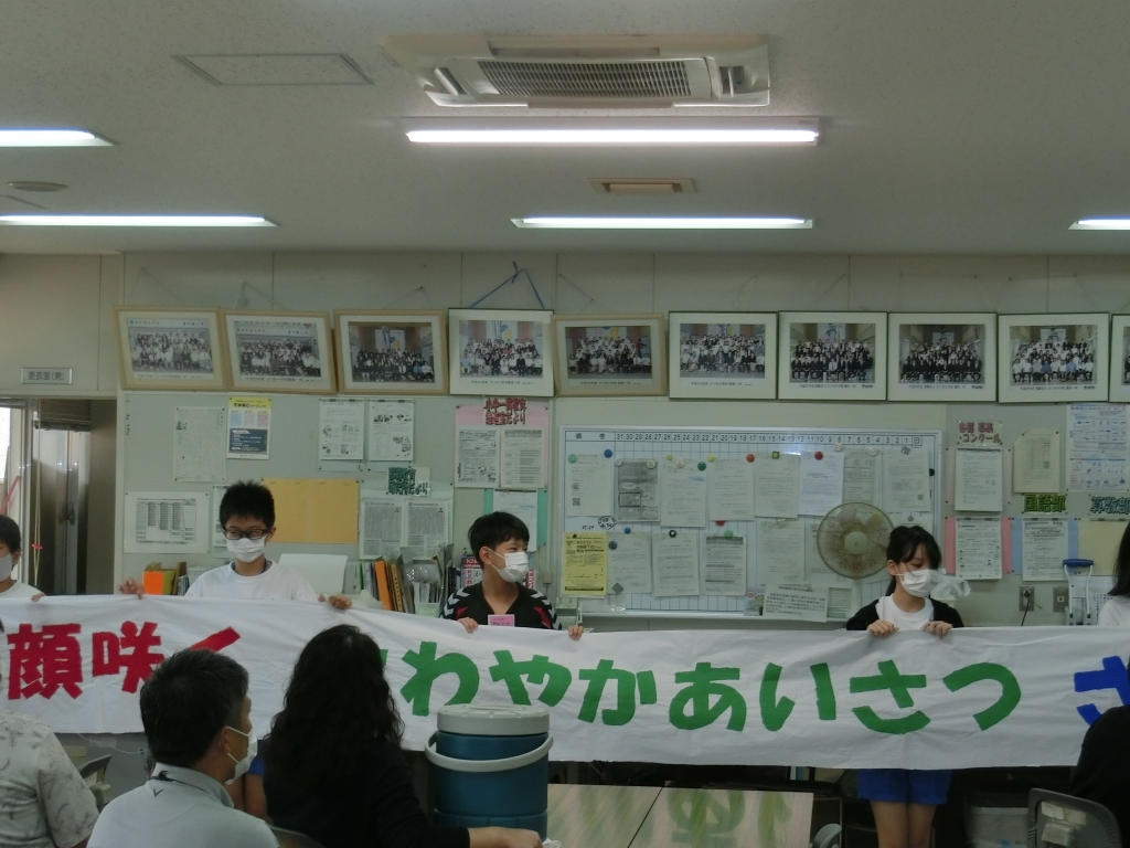 本来ならば全校朝会での発表を予定していましたが、コロナ感染予防対策で職員室での発表となりました。