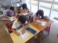 平和集会後の3校時は、各教室で今日の講演を聞いての感想を書きました。児童一人一人が真剣に考え感想を書いていました。