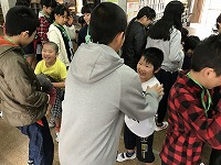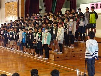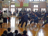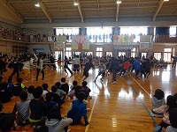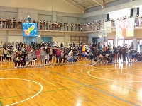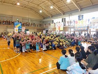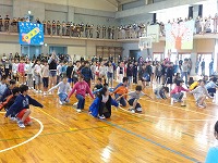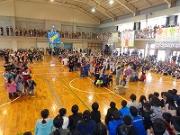 平成29年3月9日(木)「卒業を祝う会」が3・4校時に行われ、卒業まであとわずかとなった6年生を、全校児童で祝いました。各学年からの出し物では、1年生は6年生と仲良く手をつないで入場し、一緒にダンスを踊りました。6年生の胸には1年生からプレゼントされたメダルが輝いていました。2年生・3年生・4年生はダンス、5年生はダンスと綱引きを行いました。各学年工夫を凝らした出し物に、会場は大いに盛り上がりました。最後は、6年生から素敵な歌の披露と、在校生、先生方、お父さん・お母さんへ向けて感謝のメッセージがありました。6年生のみなさん、残り少ない小学校生活を、思い切り楽しんでください。卒業おめでとう!