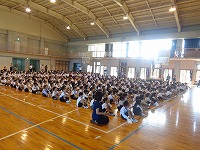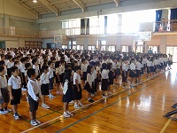 平成27年9月2日(水)図書朝会がありました。図書委員会による本の紹介や、読書月間に行われる内容のお知らせでした。最後に方言クイズもあり、盛り上がりました。読書月間中は読書クイズも行われる予定です。たくさんの本を読んで、全問正解目指してがんばりましょう。