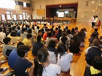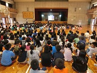 平成27年9月2日(水)図書朝会がありました。図書委員会による本の紹介や、読書月間に行われる内容のお知らせでした。最後に方言クイズもあり、盛り上がりました。読書月間中は読書クイズも行われる予定です。たくさんの本を読んで、全問正解目指してがんばりましょう。