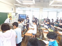 平成27年9月2日(水)図書朝会がありました。図書委員会による本の紹介や、読書月間に行われる内容のお知らせでした。最後に方言クイズもあり、盛り上がりました。読書月間中は読書クイズも行われる予定です。たくさんの本を読んで、全問正解目指してがんばりましょう。