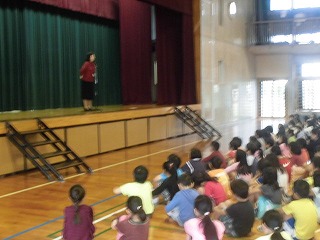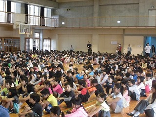 平成27年9月2日(水)図書朝会がありました。図書委員会による本の紹介や、読書月間に行われる内容のお知らせでした。最後に方言クイズもあり、盛り上がりました。読書月間中は読書クイズも行われる予定です。たくさんの本を読んで、全問正解目指してがんばりましょう。