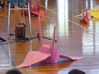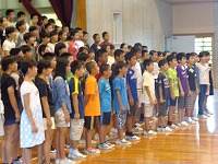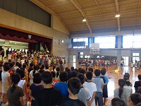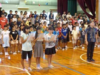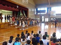 平成28年6月22日(水)音楽朝会がありました。今回は6年生が担当学年でした。今月は平和月間ということで、折り鶴も飾られて歌に平和への思いを込めて合唱しました。6年生の歌声と、全校児童で歌った「月桃」は、気持ちのこもったとても素敵な歌声でした。