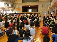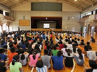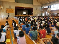 平成27年9月2日(水)図書朝会がありました。図書委員会による本の紹介や、読書月間に行われる内容のお知らせでした。最後に方言クイズもあり、盛り上がりました。読書月間中は読書クイズも行われる予定です。たくさんの本を読んで、全問正解目指してがんばりましょう。