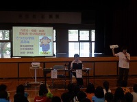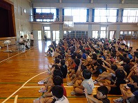 平成28年7月12日(火)体育館で非行防止教室がありました。講師に豊見城警察署生活安全課の「新垣 聖子さん」「眞境名 千秋さん」をお招きしました。1年生から3年生までの低学年は「2校時」4年生以上の高学年は「3校時」に行いました。万引き、たばこ、飲酒、非行防止等について説明を受けた後、DVDを鑑賞してまとめを行いました。その後、各教室に戻ってワークシートで振り返り、どの児童も真剣に話を聞き、考えていました。講師の新垣さん、眞境名さん、本当にありがとうございました。