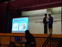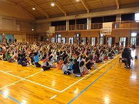 平成27年9月2日(水)図書朝会がありました。図書委員会による本の紹介や、読書月間に行われる内容のお知らせでした。最後に方言クイズもあり、盛り上がりました。読書月間中は読書クイズも行われる予定です。たくさんの本を読んで、全問正解目指してがんばりましょう。
