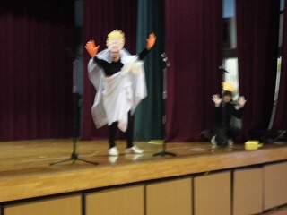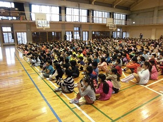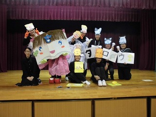 平成28年2月3日(水)お話朝会がありました。今日は、ふだん読み聞かせをしてくださっている「よむよむの会」のみなさんによる劇が披露されました。可愛いゆるキャラや衣装に身を包んだお母さん達の登場に会場はとても盛り上がりました。最後は全員で手話による歌を歌い、楽しい時間となりました。「よむよむの会」のみなさん、ありがとうございました。