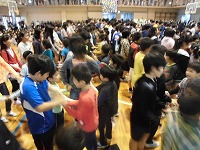 平成27年9月2日(水)図書朝会がありました。図書委員会による本の紹介や、読書月間に行われる内容のお知らせでした。最後に方言クイズもあり、盛り上がりました。読書月間中は読書クイズも行われる予定です。たくさんの本を読んで、全問正解目指してがんばりましょう。
