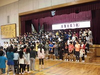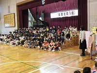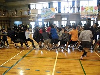 平成28年3月10日(木)3・4校時に卒業を祝う会がありました。1年生と6年生が手を繋いで一緒に入場し、プレゼントを6年生にあげました。2年生、3年生、4年生からはダンスの披露、5年生は6年生と5色綱引きバトル。両者とも本気で挑んだ結果・・・6年生の圧勝でした。6年生のさすがの強さを目の当たりにしました。最後は全員で「グッデーグッバイ」の大合唱。会場が一体になり、とても素敵な歌声が体育館いっぱいに広がりました。6年生のみなさん、今までありがとうございました!残り少ない小学校生活を思いきり楽しんでくださいね。
