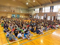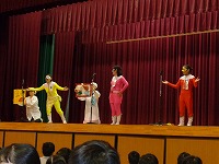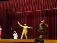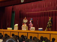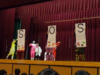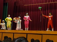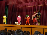 平成29年2月1日(水)お話朝会がありました。今日は、毎年恒例になっている、「よむよむの会」の方々による「劇」が行われました。さつき小学校の給食室を舞台に、残量が多いさつき小の給食を鬼たちが奪い、それをさつきレンジャー達が取り返すという、ストーリーになっていました。カラフルな鬼たちや、正義のヒーローさつきレンジャー、おもしろい給食当番の「しろう」と「ゆみこ」、校長先生(本人)等、登場人物が実に個性的で、とても盛り上がりました。手作りの衣装や小道具、ナレーションやBGMなども効果的に使い、プロの劇団さながらの内容になっていました。よむよむ劇団のみなさん、笑いと感動をどうもありがとうございました。さつき小のみなさん、これからも、給食は残さずおいしくいただきましょうね。