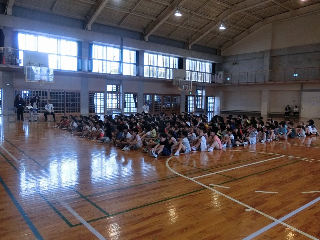 学級保護者会の間、子どもたちは体育館にて安全についてはじめ、