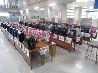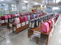 平成28年3月7日(月)~10日(木)の間、校舎内1階のエントランスにて、ランドセル展示会を開催しています。この取り組みは、6年生が実際に6年間大切に使ってきたランドセルを展示することで、物の大切さや感謝する気持ちを持ってもらいたいと、4年前から行われています。各クラスごとに並べられたランドセルは、どれも使いこまれていて、とても歴史を感じます。一人一人ランドセルとの思い出が書かれたワークシートには、「ありがとう」「ごめんなさい」「大切に使って良かった」など、様々な感想が書かれていました。