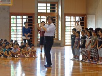 平成27年9月2日(水)図書朝会がありました。図書委員会による本の紹介や、読書月間に行われる内容のお知らせでした。最後に方言クイズもあり、盛り上がりました。読書月間中は読書クイズも行われる予定です。たくさんの本を読んで、全問正解目指してがんばりましょう。