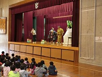 7日(水)にお話朝会がありました。PTAの方々を中心に「大きなカブ」の劇をして下さいました。ウチナーグチでの劇はとても新鮮で、子どもたちも真剣に観ていました。