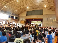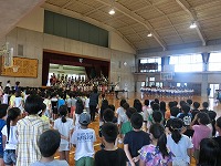 毎月恒例の、音楽朝会がありました。5月は5年生です。「すてきな一歩」や「ビリーブ」をきれいな歌声で歌ってくれました。1年生も集中して聴いてくれました。