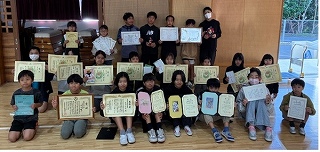 今朝は、表彰朝会がありました。 今回は、文化面で将棋、書道、絵はがき、ポスター、それからスポーツ面では、空手、テニス、水泳、野球、サッカー、ミニバスケットボールで活躍したみなさんが表彰されました。おめでとうございます。