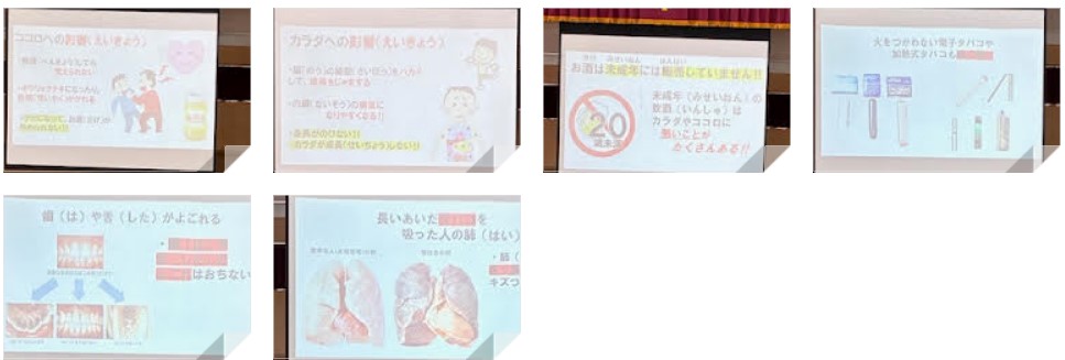 今回は、タバコ・お酒・薬物の弊害について学習しました。子ども達の健全な成長のため、本人達が意識するだけでなく、各家庭でも、子ども達の小さな変化を見落とさないよう、また、話し合いをされてください。