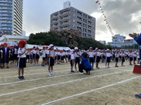 運動会のテーマ「壺屋っ子 ハッピー 協力 ゴーゴー 頑張る」を掲げ、
